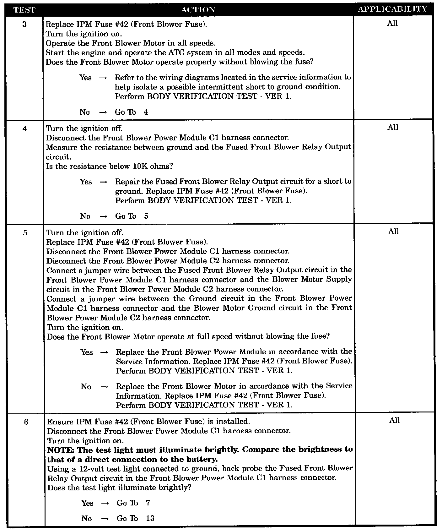 - Fused front blower relay output circuit open