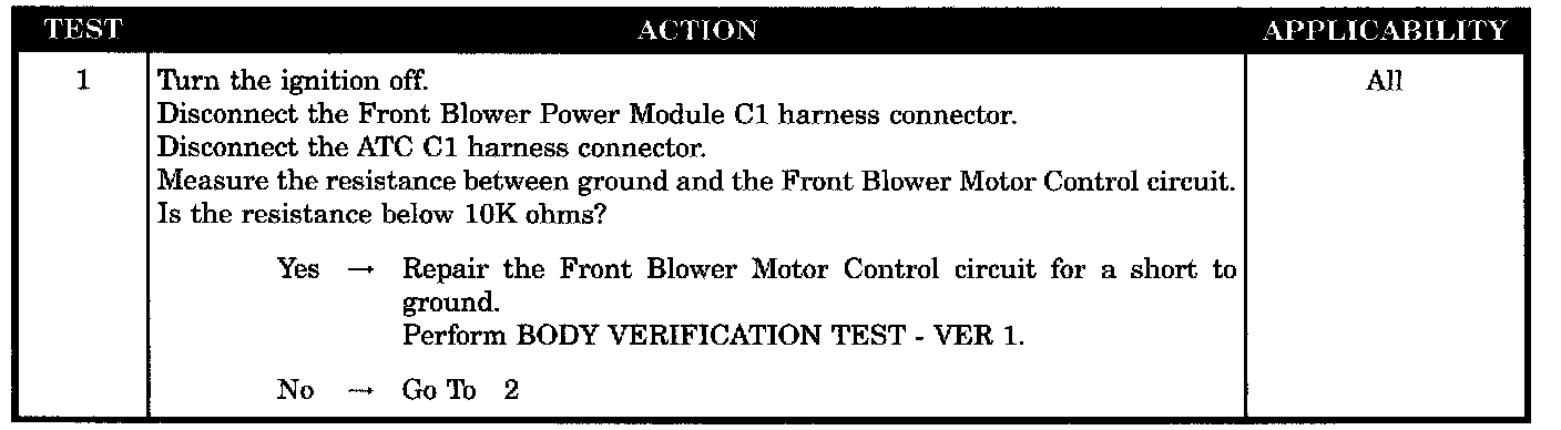 Front blower motor control circuit shorted to ground