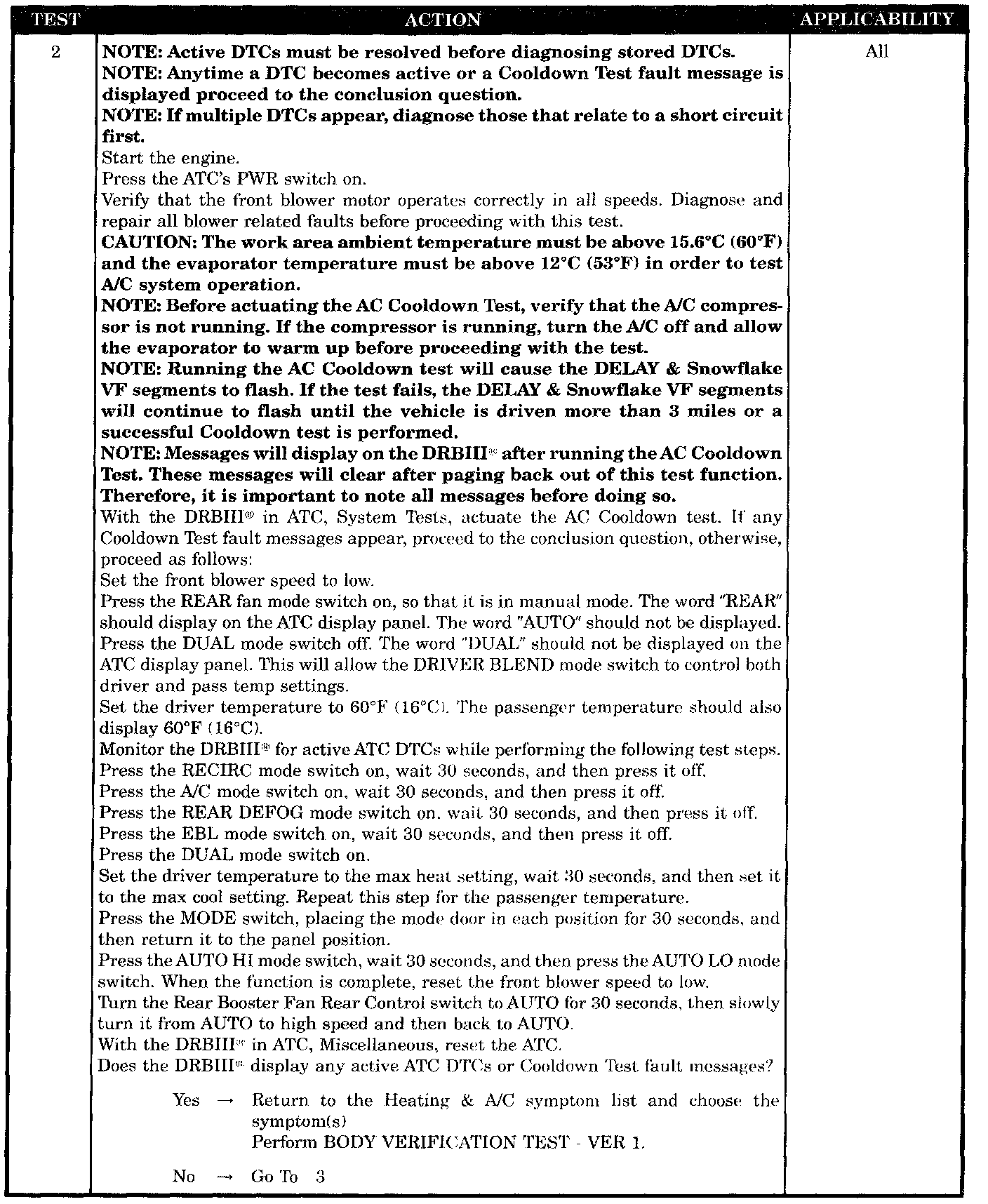 - Check for active ATC DTCs and cooldown test fault messages