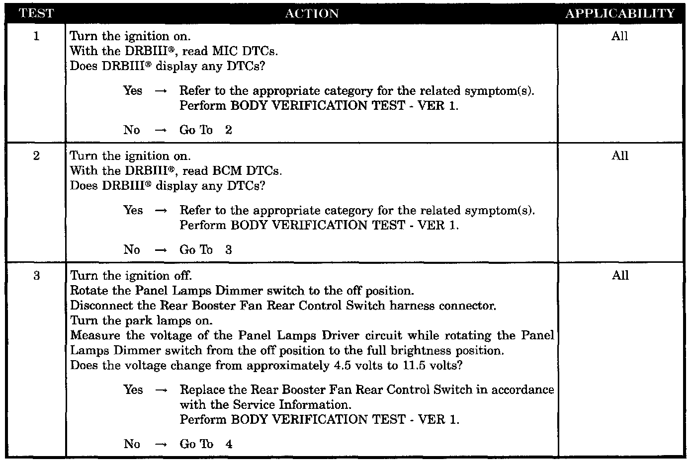 Rear Booster Fan Rear Control Switch Backlighting Inoperative