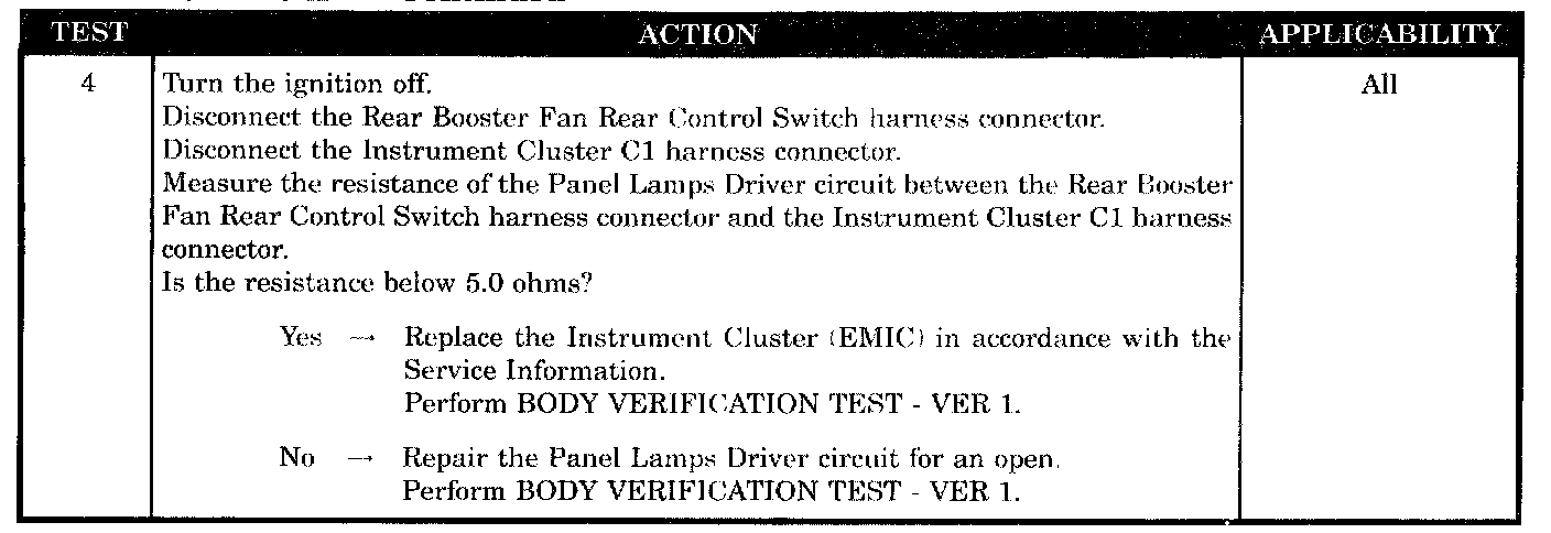 REAR BOOSTER FAN REAR CONTROL SWITCH BACK LIGHTING INOPERATIVE