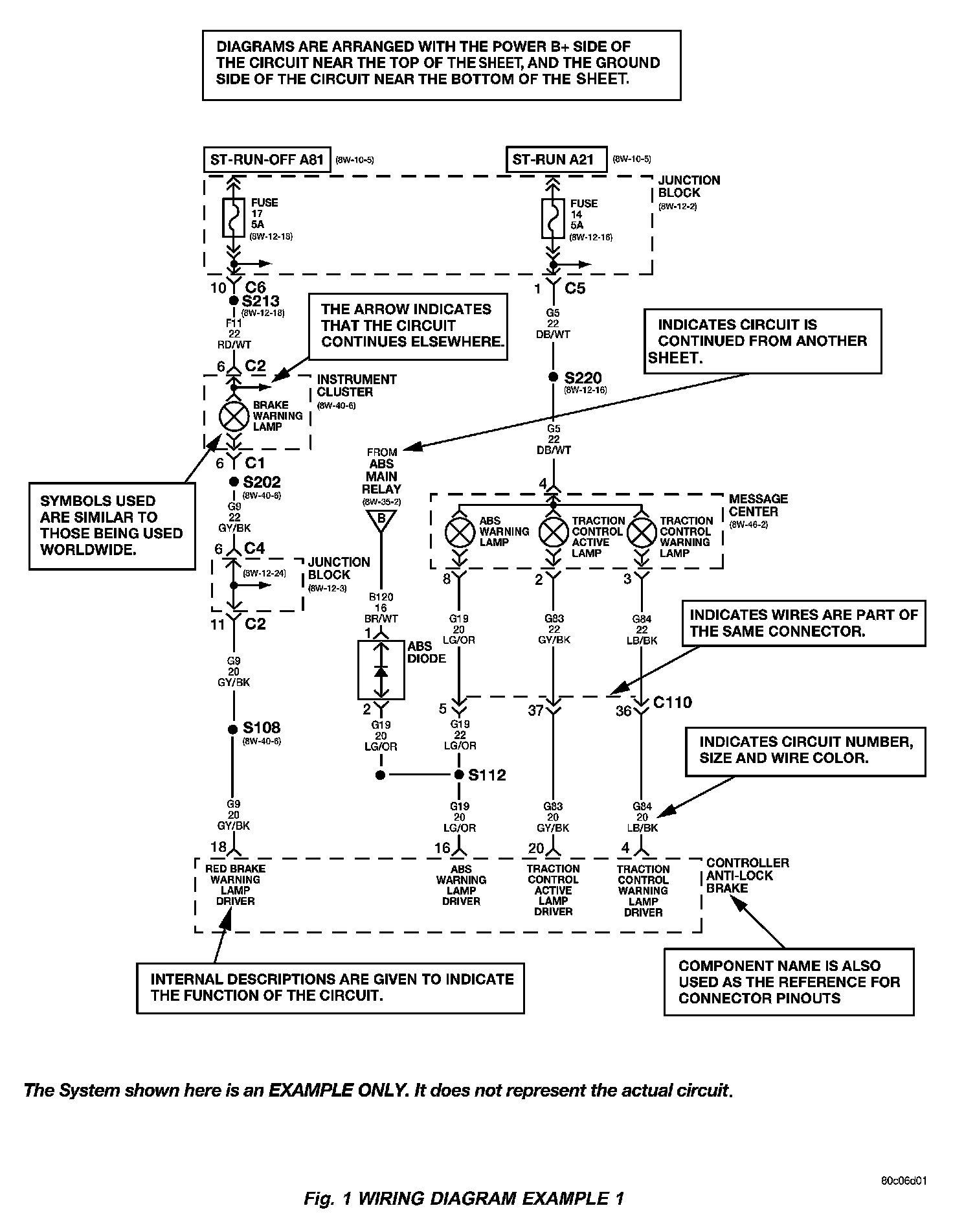 Diagrams are arranged such that the power (B+) side of the circuit is placed near the top of the sheet, and the ground (B-) side of the circuit is placed near the bottom of the sheet (Fig. 1).