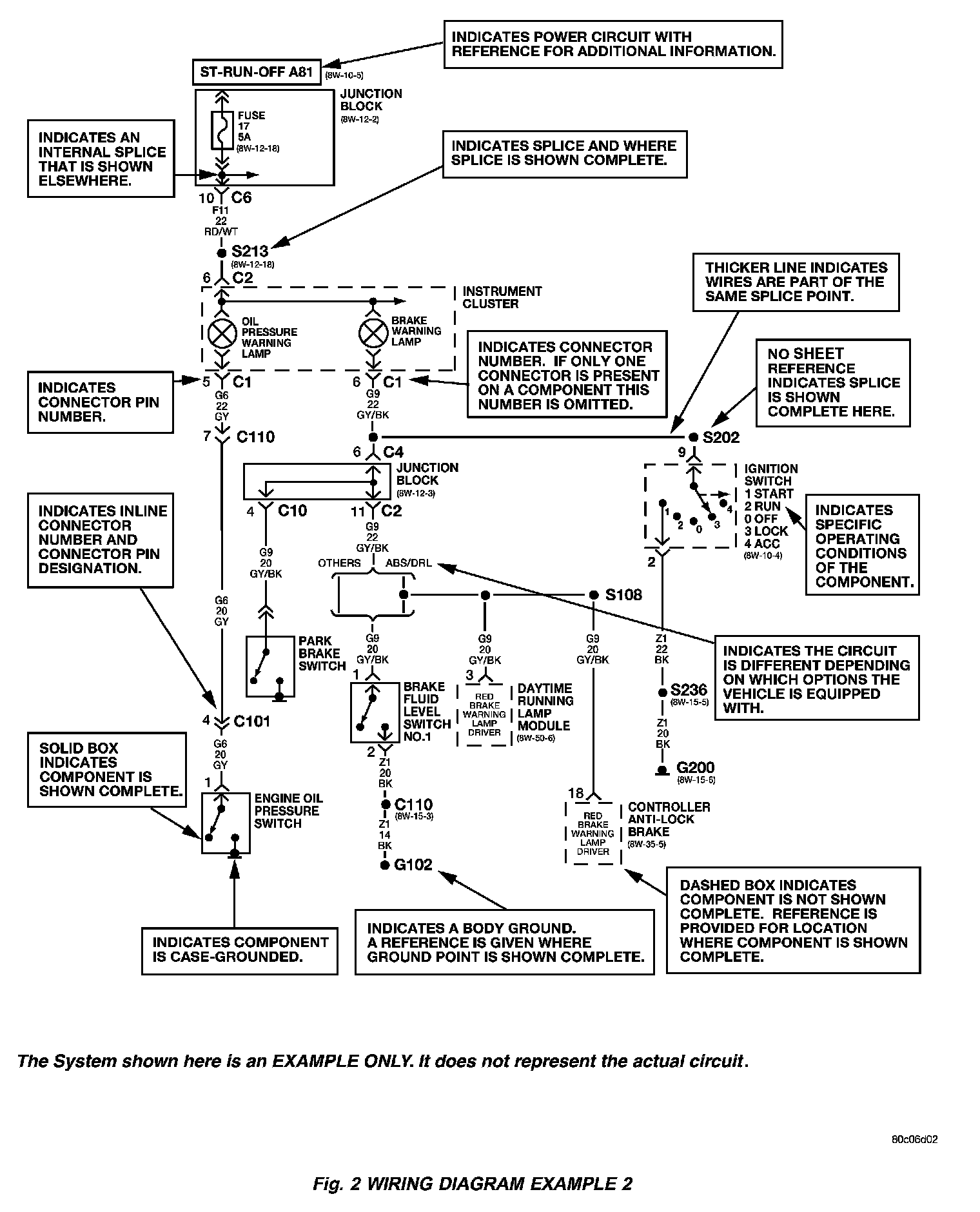It is important to realize that no attempt is made on the diagrams to represent components and wiring as they appear on the vehicle. For example, a short piece of wire is treated the same as a long one. In addition, switches and other components are shown as simply as possible, with regard to function only.