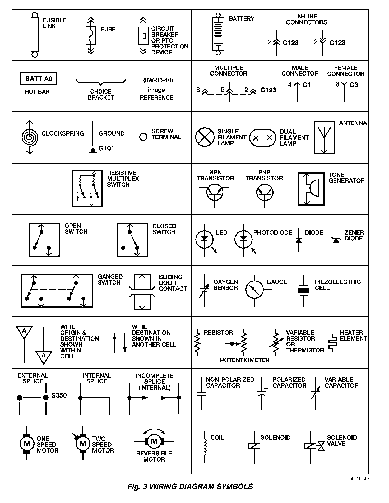 International symbols are used throughout the wiring diagrams. These symbols are consistent with those being used around the world (Fig. 3).