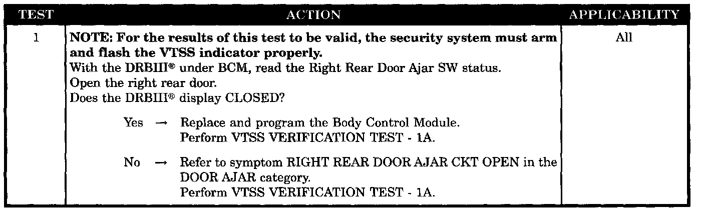 Check DRBIII(R) for right rear door ajar response