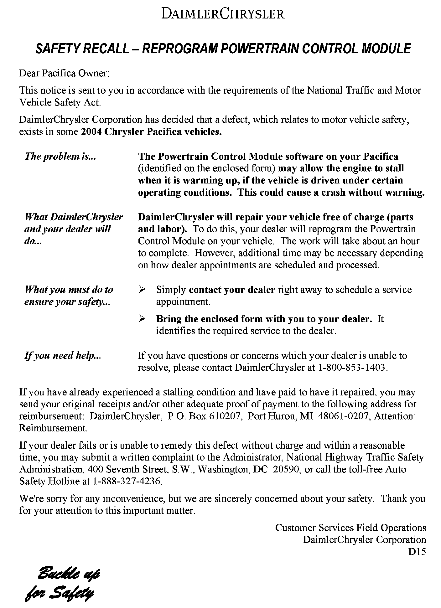 Recall - PCM Reprogramming for Engine Stalling