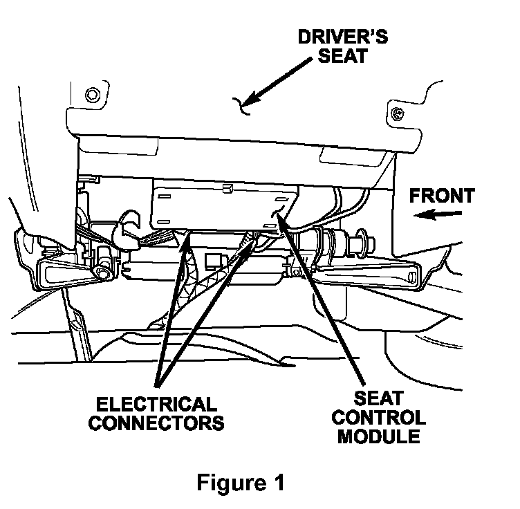 5. Open the left rear door and locate the Seat Control Module (SCM) under the driver's seat and remove the SCM attaching screws (Figure 1).