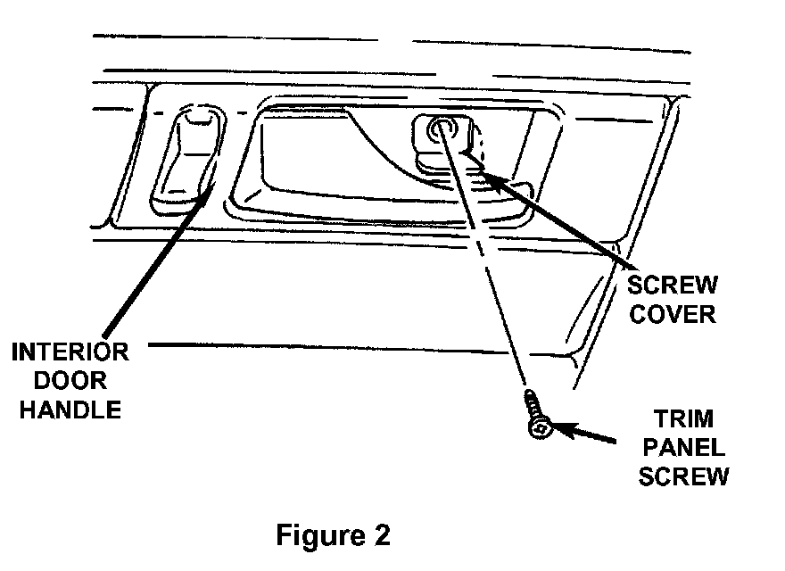 11. Open the screw cover located in front of the interior driver's door handle and remove the trim panel screw (Figure 2).