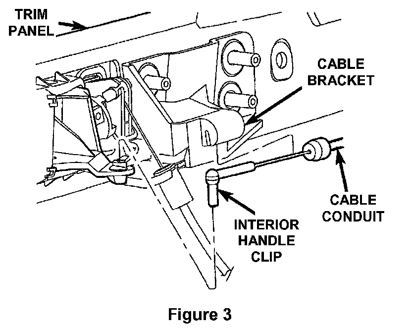 17. Disconnect the interior handle cable clip and pull the conduit end out from the bracket (Figure 3).