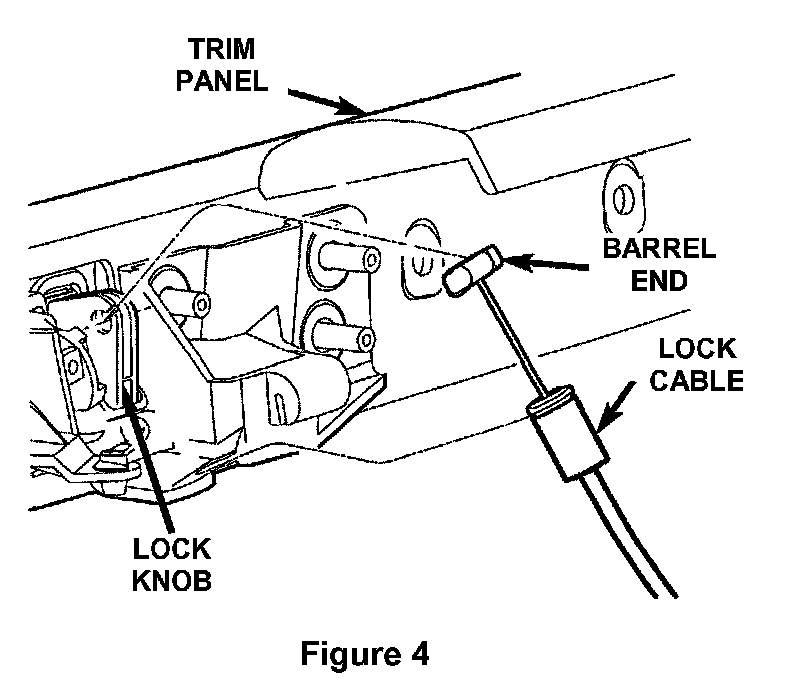 18. Disconnect the lock knob conduit end from the bracket. Slide the cable barrel end from the lock knob and guide the cable through the slot (Figure 4).