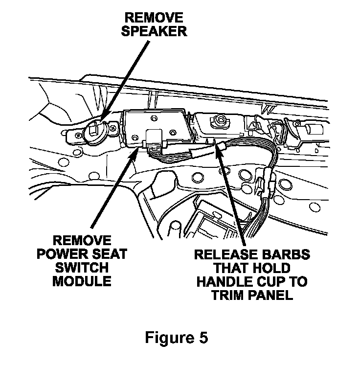 21. Remove the power seat adjuster switch module from the trim panel (Figure 5).
