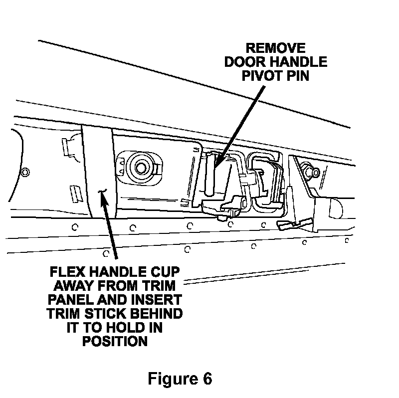 24. Flex the handle cup outward away from the trim panel and insert a trim stick behind it to hold it in position (Figure 6).