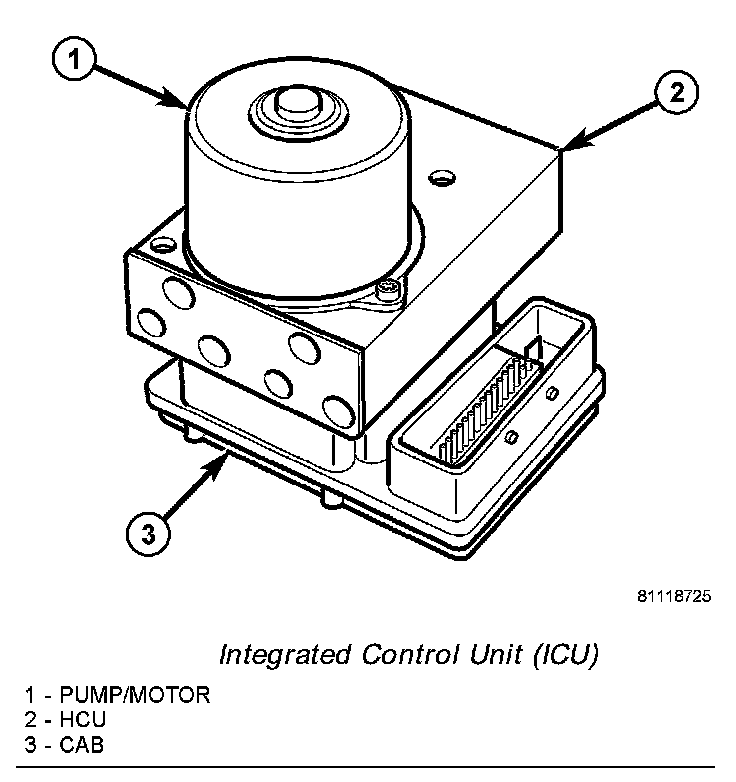 The controller antilock brake (CAB) is a microprocessor-based device which monitors the antilock brake system (ABS) during normal braking and controls it when the vehicle is in an ABS stop. The CAB is mounted to the HCU as part of the integrated control unit (ICU). The CAB uses a 47-way connector on the vehicle wiring harness. The power source for the CAB is through the ignition switch in the RUN or ON position. The CAB is on the PCI bus.