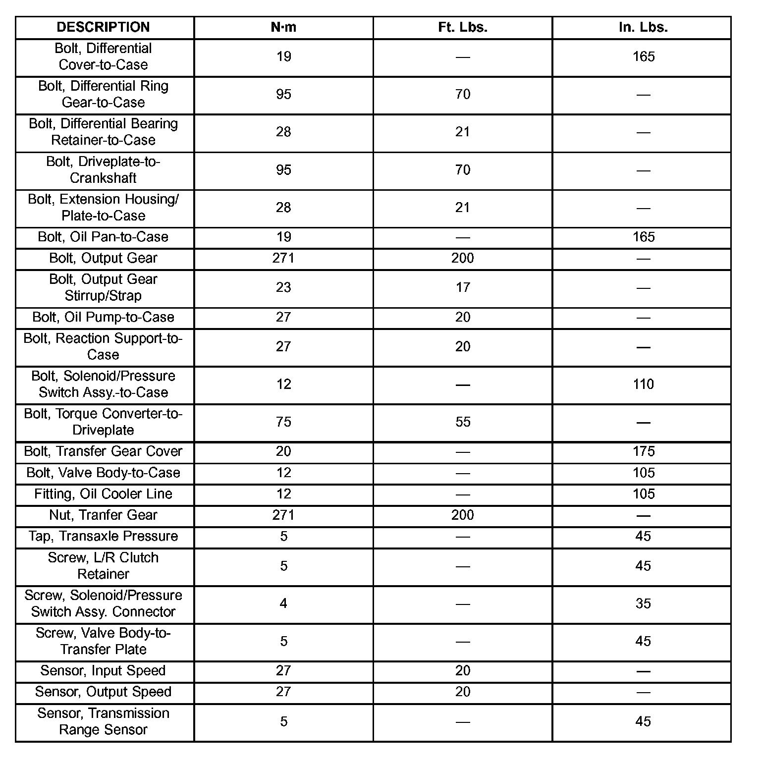 Torque Specifications: