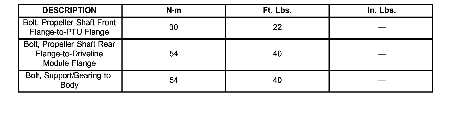 Torque Specifications: