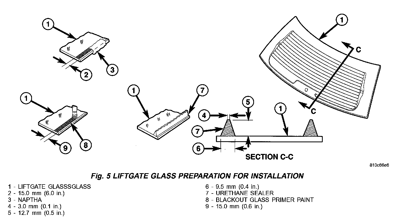 7. Apply Glass Prep adhesion promoter 25 mm (1 in.) wide around perimeter of liftgate glass and wipe with clean/dry lint-free cloth until no streaks are visible (Fig. 5).