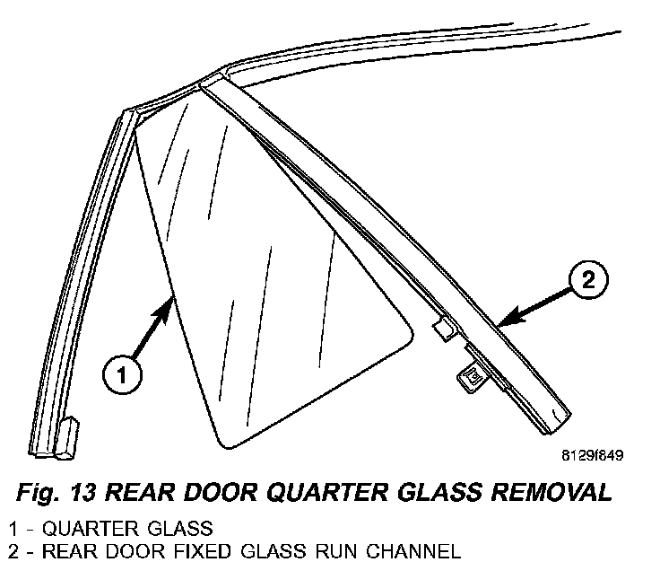 1. Position quarter glass into the fixed glass run channel (Fig. 12) and (Fig. 13).