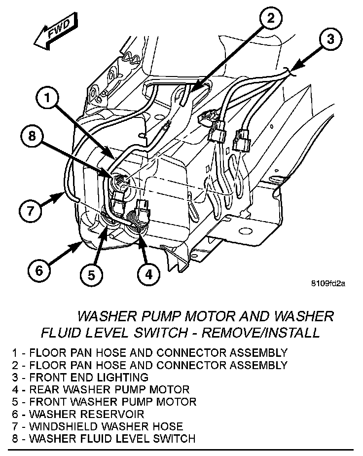Washer Pump Motor And Washer Fluid Level Switch - Remove/Install:
