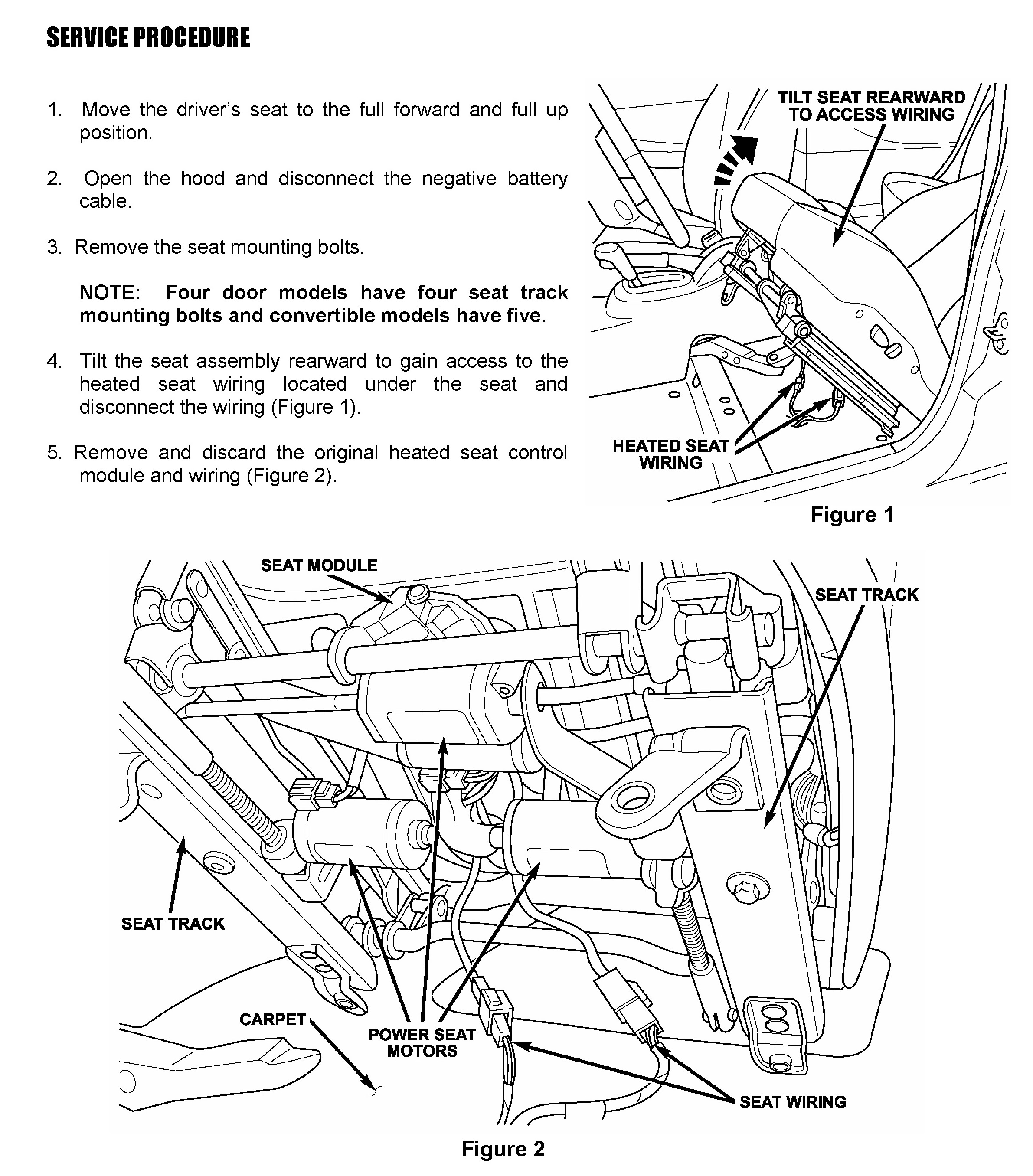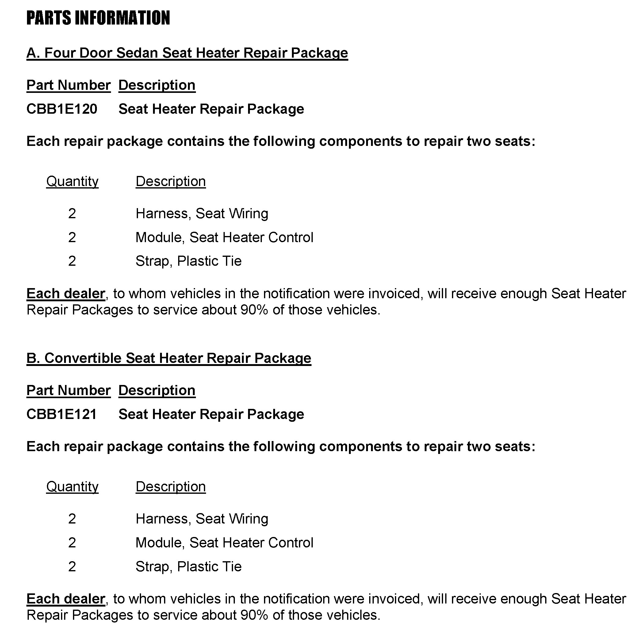 - To correct this condition, the right and left side front heated seat control modules and wiring harnesses must be replaced.