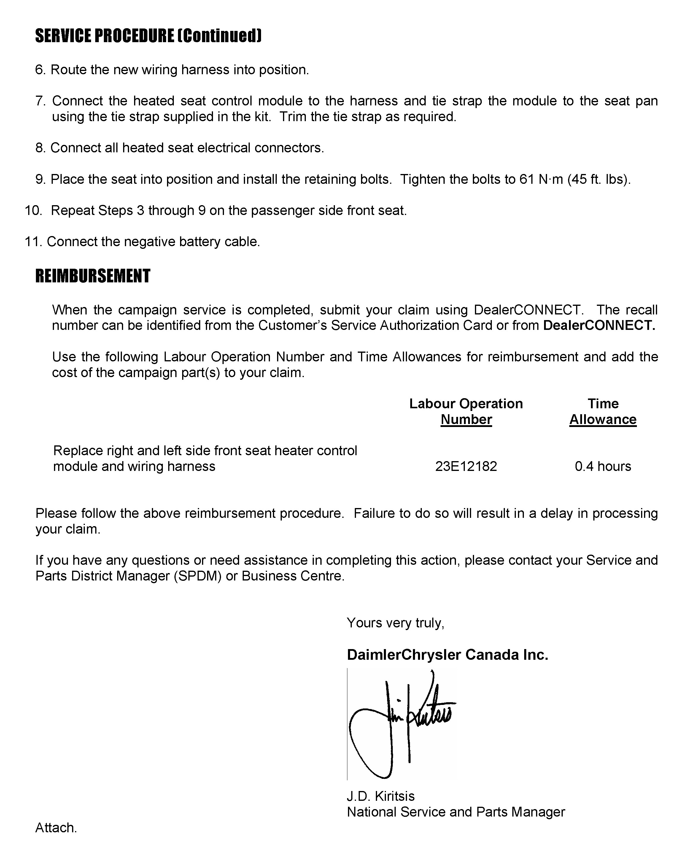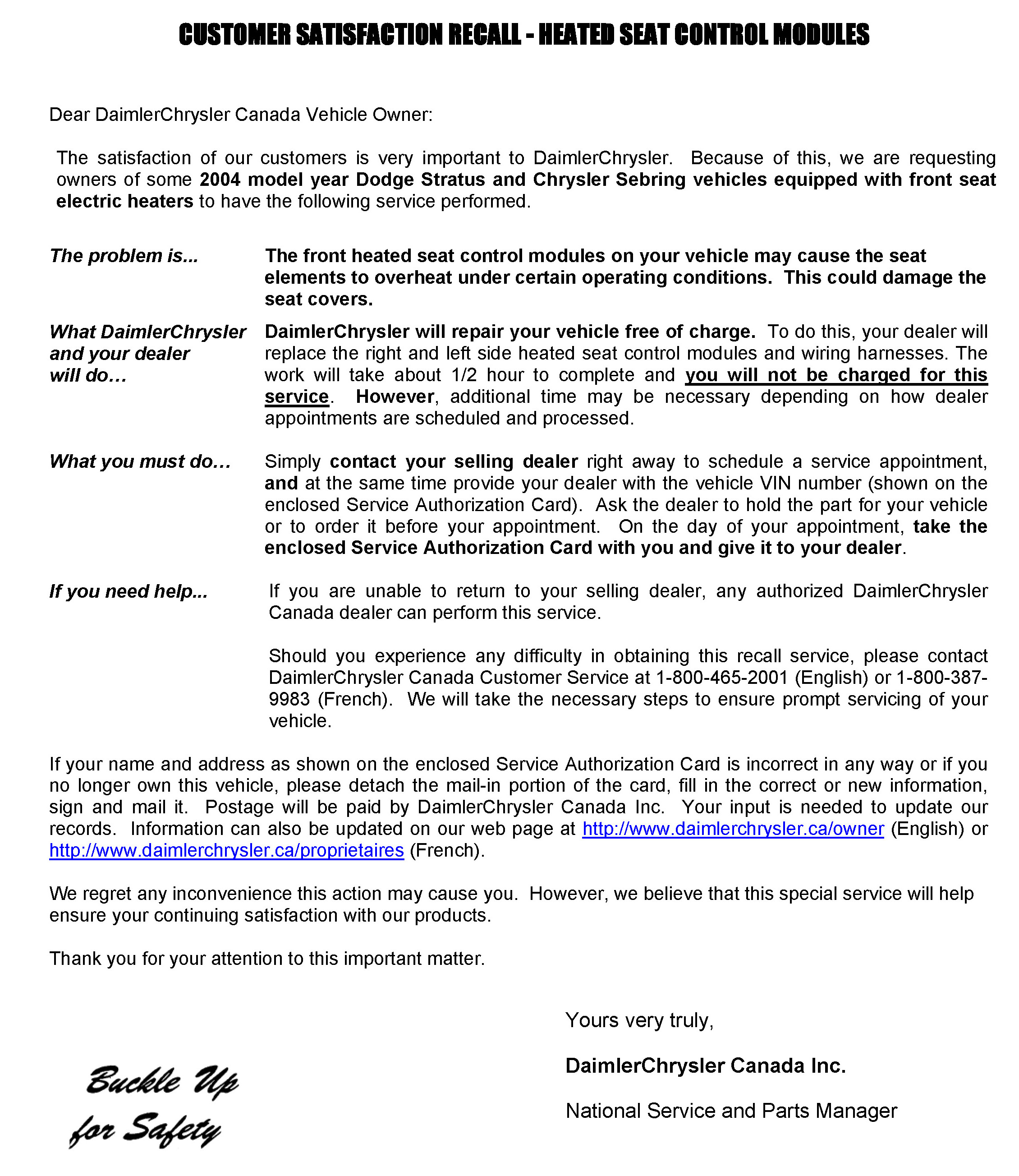 This notification applies only to the above vehicles equipped with heated front seats (sales code JPM) built from December 19, 2003 through February 10, 2004 (MDH 121910 through 021012).