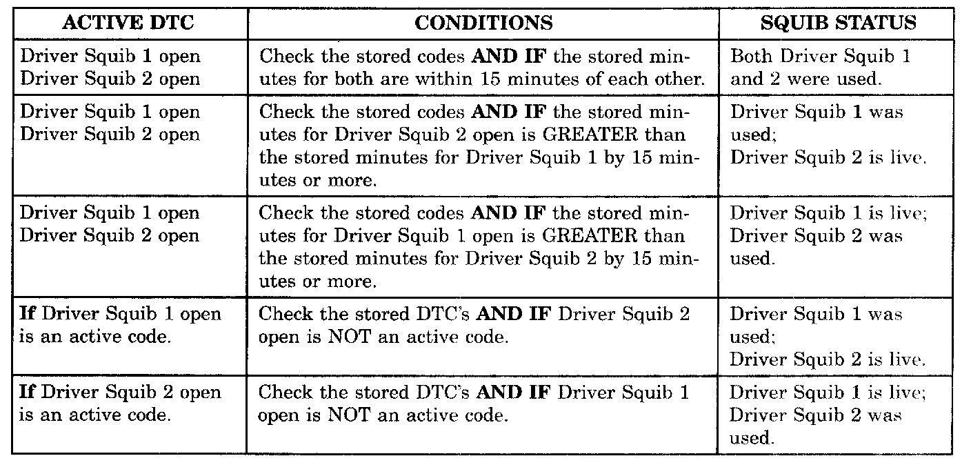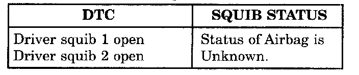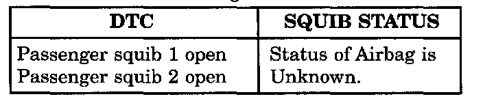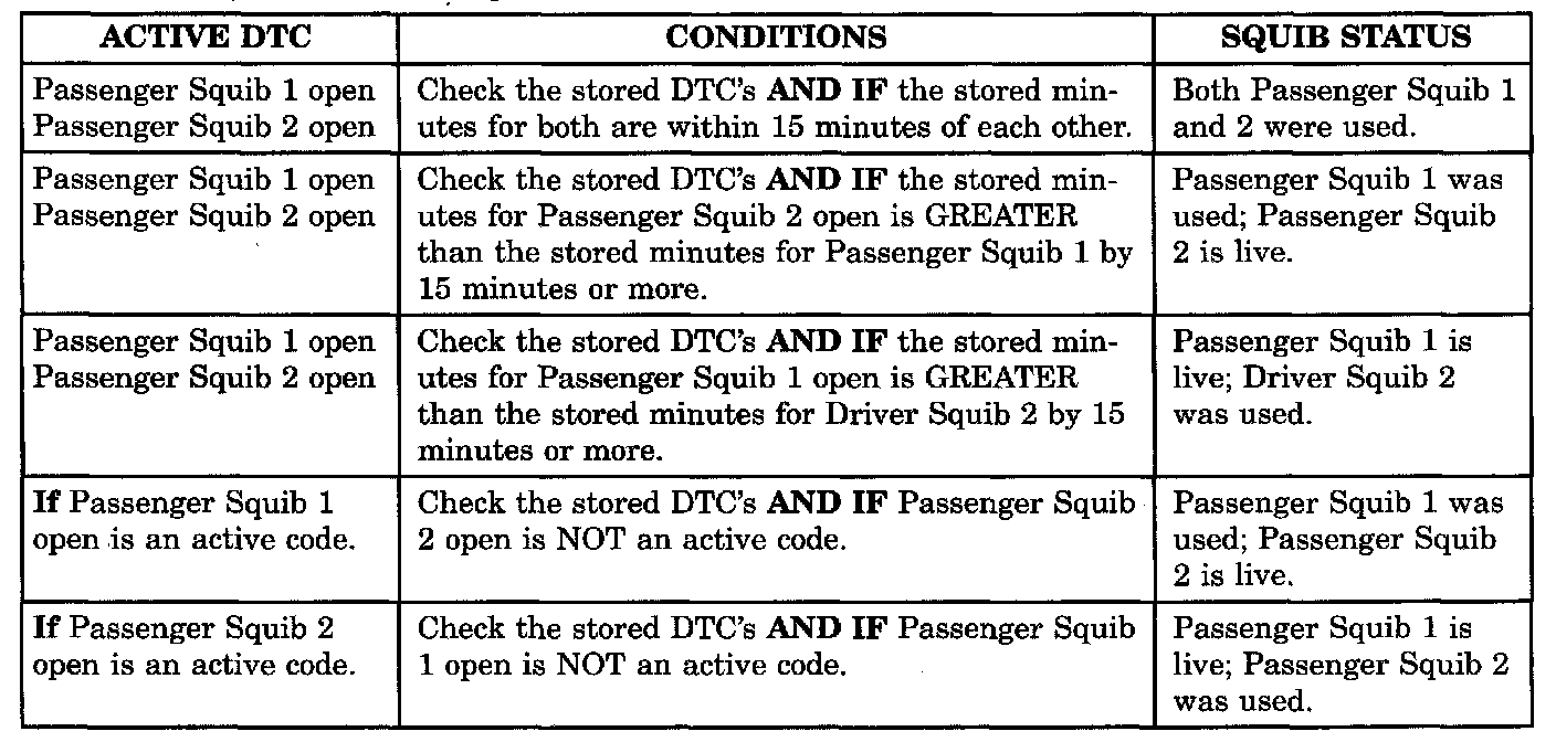 CAUTION: Deployed front airbags may or may not have live pyrotechnic material within the airbag inflator. Do not dispose of driver and passenger airbags unless you are sure of complete deployment. Please refer to the hazardous substance control system for proper disposal. Dispose of deployed airbags in a manner consistent with state, provincial, local, and federal regulations. Use the following table to identify the status of the airbag squib.