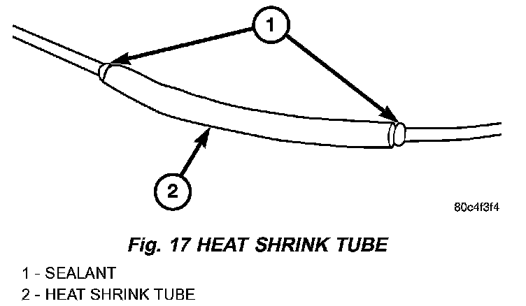 6. Center the heat shrink tubing over the joint and heat using a heat gun. Heat the joint until the tubing is tightly sealed and sealant comes out of both ends of the tubing (Fig. 17).