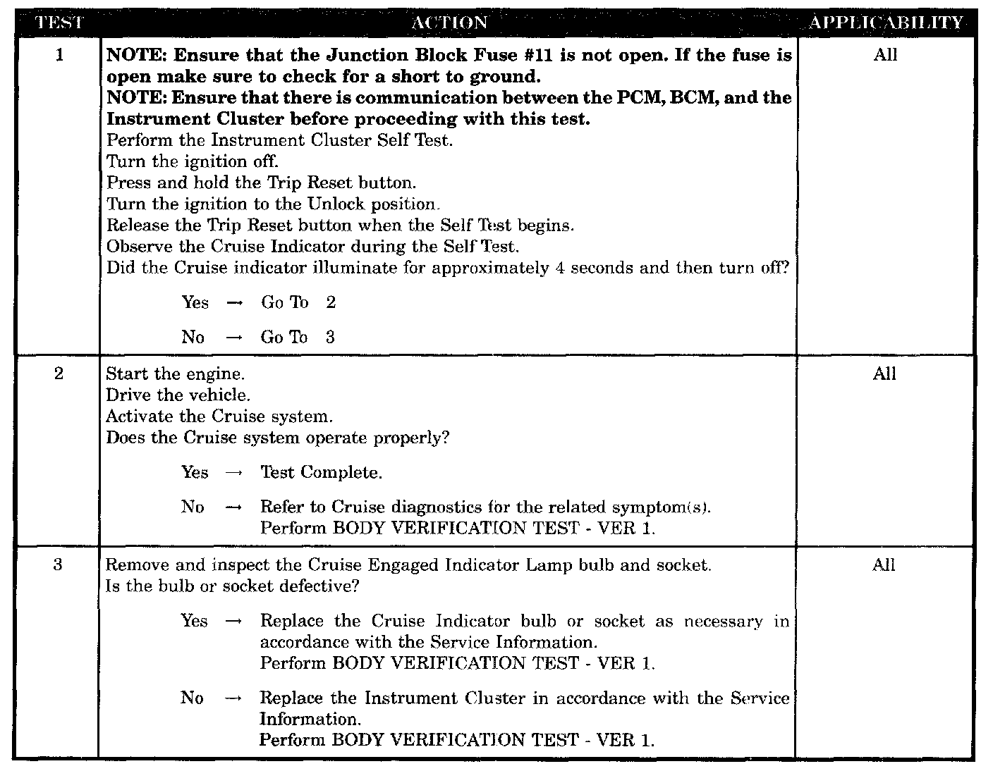 CRUISE ENGAGED INDICATOR INOPERATIVE