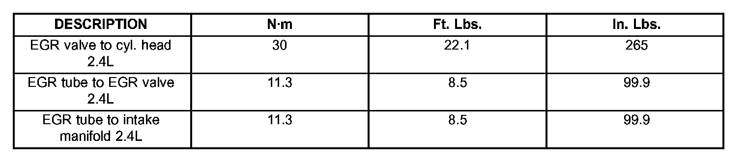 Torque Specifications: