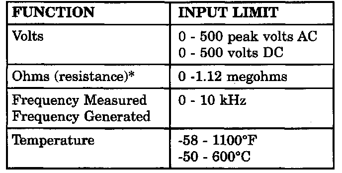 ^ Ohms cannot be measured if voltage is present. Ohms can be measured only in a non-powered circuit.
