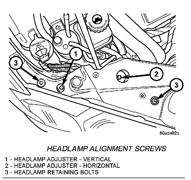 To adjust headlamp alignment, rotate alignment screws to achieve the specified low beam hot spot pattern.