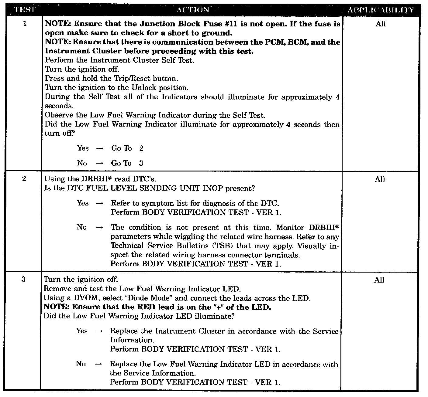 LOW FUEL WARNING INDICATOR NOT OPERATING PROPERLY