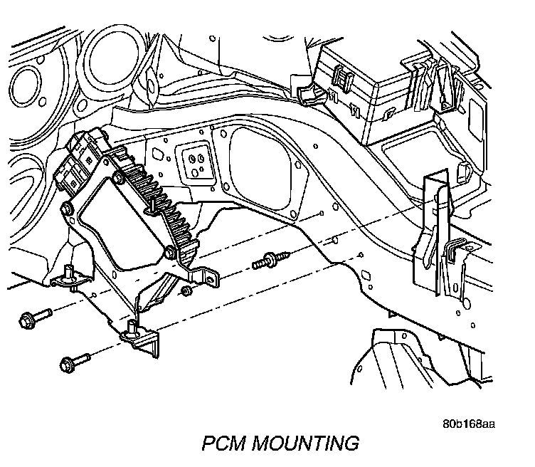 2. Install PCM and bracket. Tighten bolt to 4 Nm (35 in. lbs.) torque.