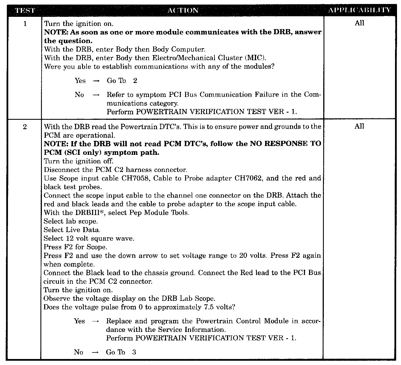 No Response From PCM (PCI Bus) - SBEC