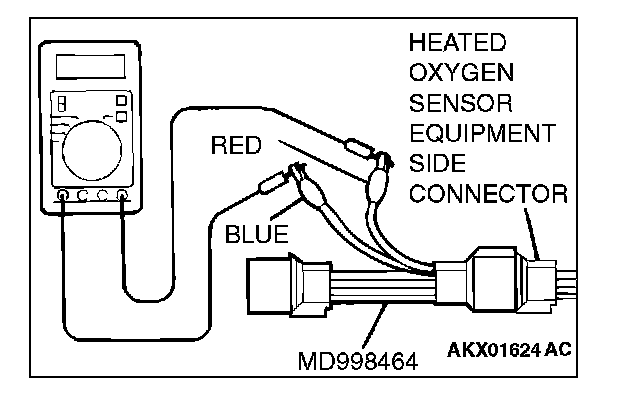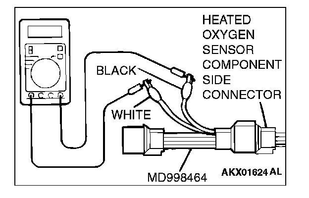 1. Disconnect the heated oxygen sensor connector and connect special tool MD998464 to the connector on the heated oxygen sensor side.