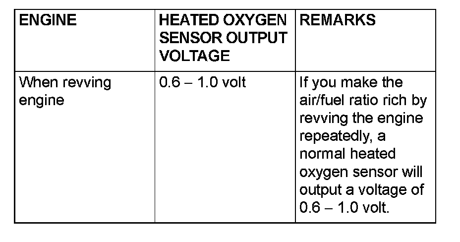 2. While repeatedly revving the engine, measure the heated oxygen sensor output voltage.