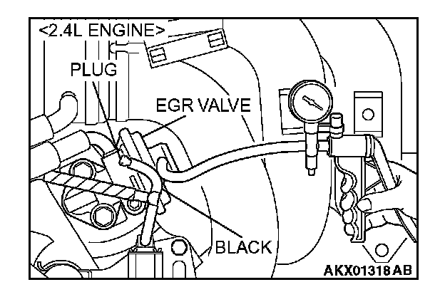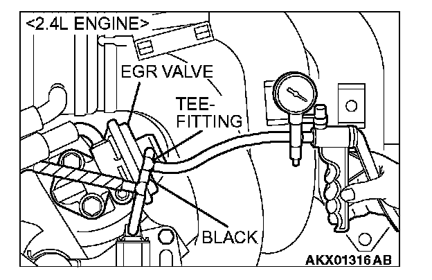 1. Disconnect the vacuum hose (black) from the EGR valve, and then connect a hand vacuum pump via the Tee-fitting.
