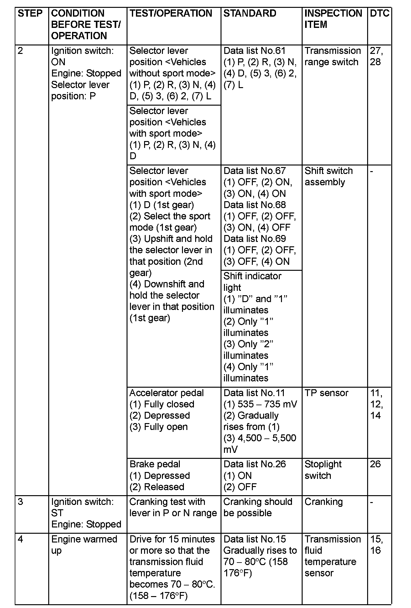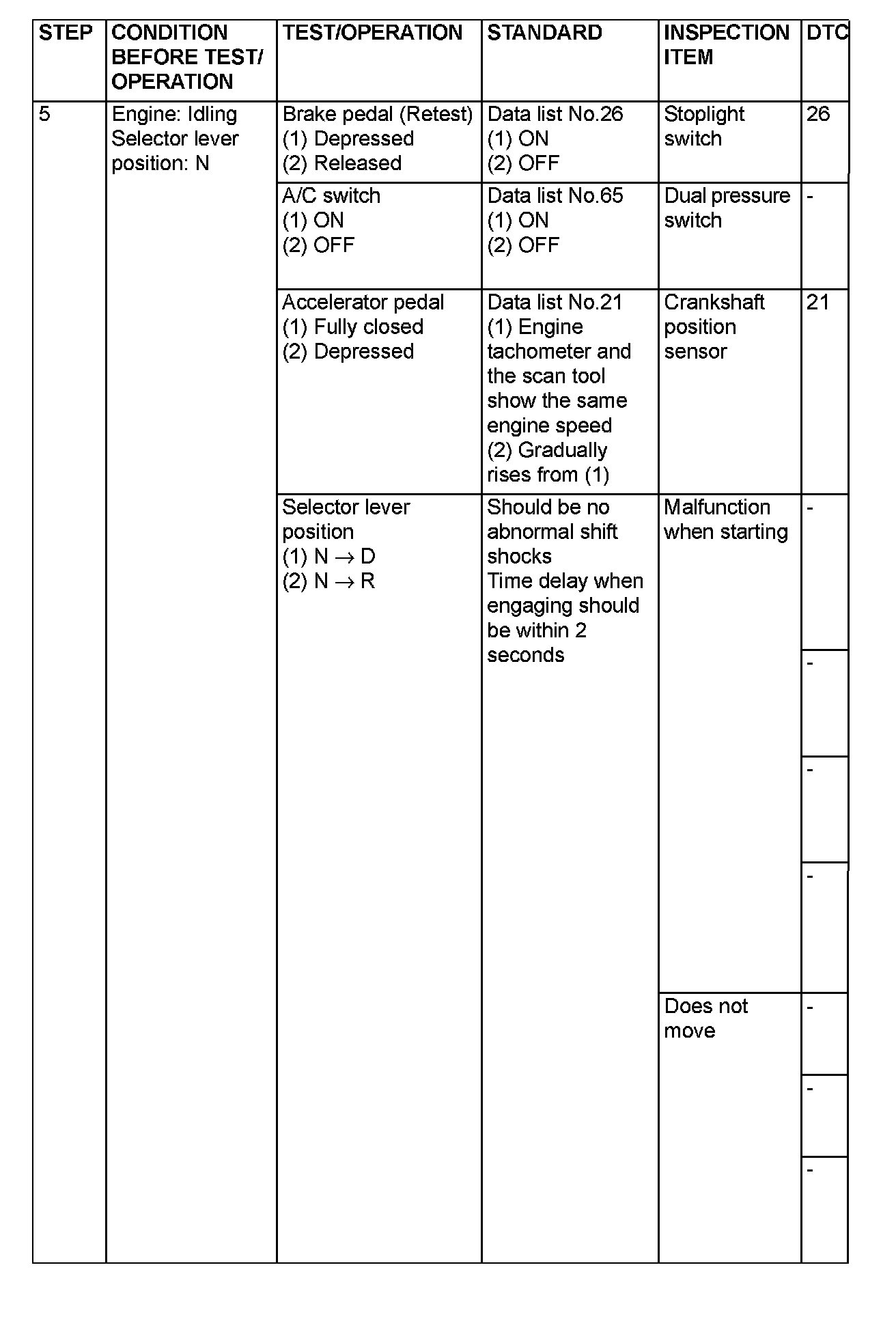 Non-Trouble Code Procedures