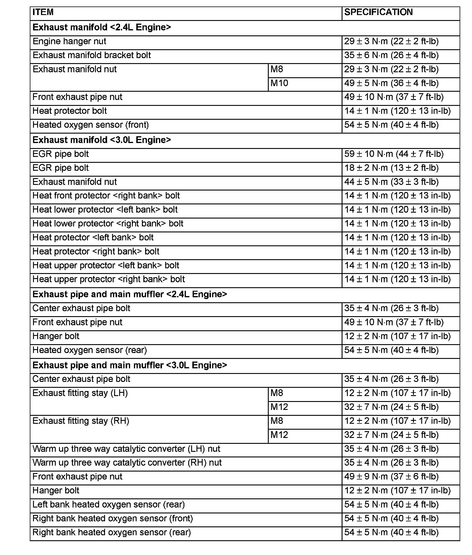 Fastener Tightening Specifications: