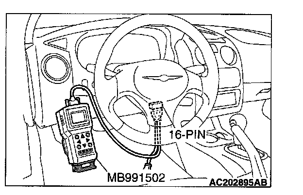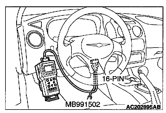 1. Connect scan tool MB991502 to the 16-pin data link connector.