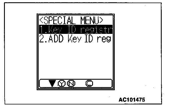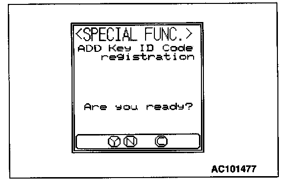 NOTE: Using the key ID register function will cause all key IDs that have been previously registered in the immobilizer-ECU to be erased. All keys need to be registered. Those which have been registered before should be on hand before using this function.
