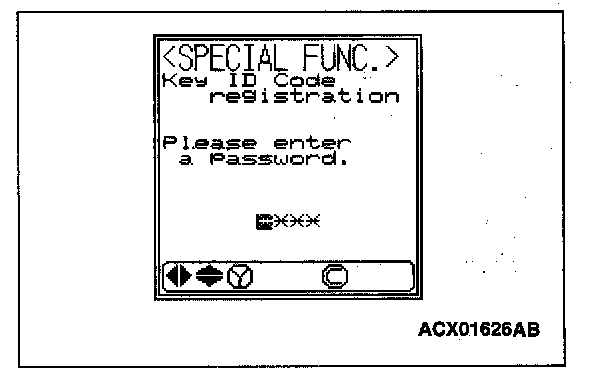 If the ignition key, the immobilizer-ECU, the ECM or the PCM is replaced or an ignition key is added, encrypted codes of all the ignition keys must be registered. (A maximum of eight different ignition key can be registered.) Moreover, when the immobilizer-ECU has been replaced, you will need to use scan tool MB991502 to register the immobilizer-ECU and input the vehicle secret code and to register the password (secret code) that the owner specifies into the immobilizer- ECU.