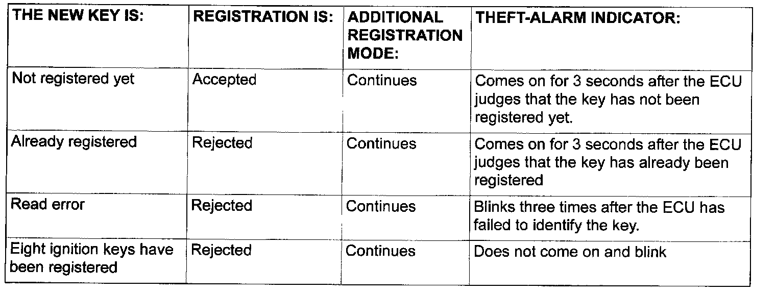 7. A maximum of eight ignition keys can be registered to one vehicle (If you attempt to register the ninth key, the immobilizer-ECU rejects the key). Follow the procedure below to register another new key.