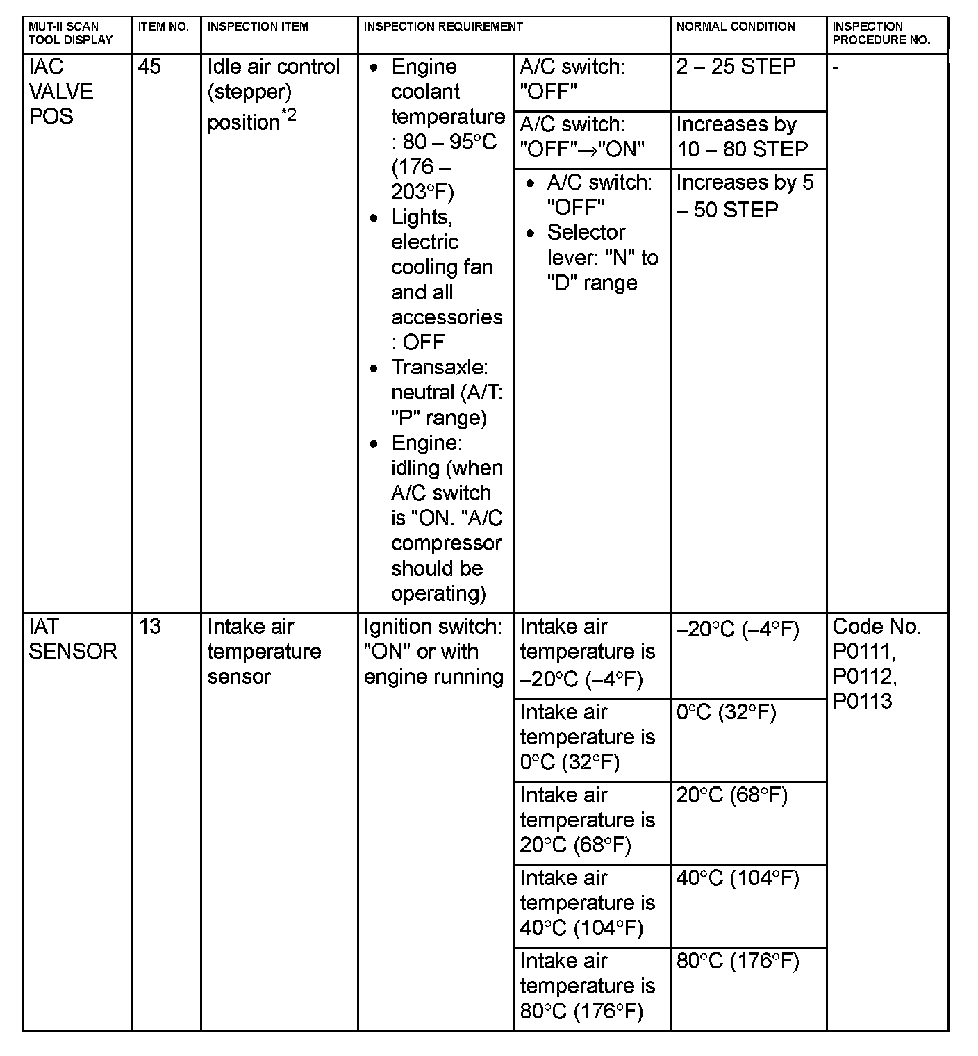 - *1: If the idle speed is lower than the standard value on a very cold engine (approximately -20 °C (-4 °F) even when the IAC motor is fully opened, the air volume limiter built in the throttle body could be defective.