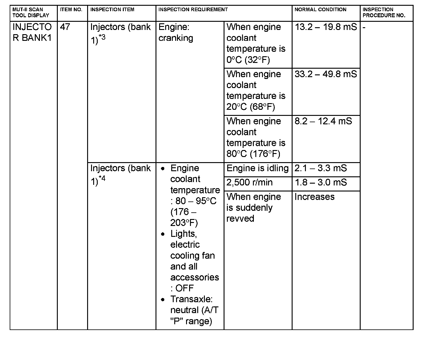 - *4: In a new vehicle [driven approximately 500 km (311 miles) or less], the injector drive time is sometimes 10% longer than the standard time.