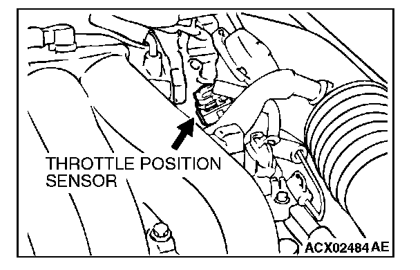 6. Disconnect scan tool MB991502, and connect the throttle position sensor connector. When the scan tool is not used, remove special tool MB991348, and connect the throttle position sensor connector.