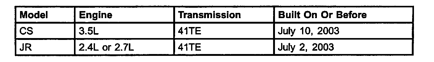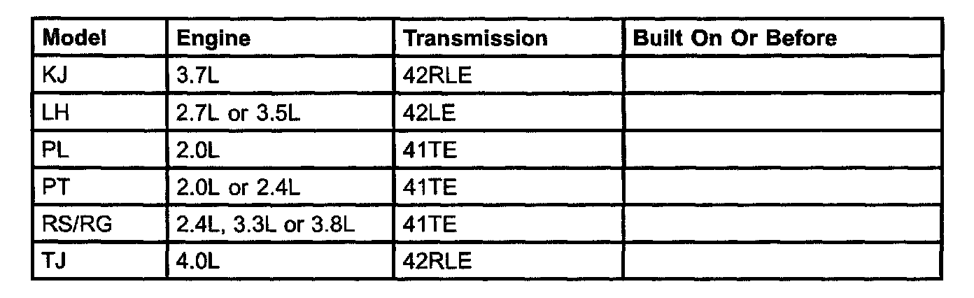 THIS BULLETIN SUPERSEDES TECHNICAL SERVICE BULLETIN 21-006-03, DATE JUNE 20, 2003, WHICH SHOULD BE REMOVED FROM YOUR FILES. ALL REVISIONS ARE HIGHLIGHTED WITH **ASTERISKS** AND INCLUDES ADDITION OF KJ AND 2.4L RS VEHICLES, REVISED NOTES, AND NEW APPLICATION TABLE.