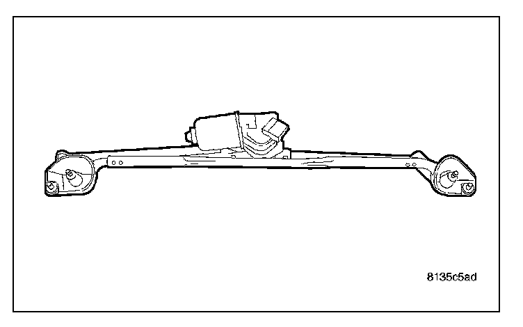 The front wiper module is secured with screws through two rubber grommet-type insulators to the cowl plenum panel. The module is located in the rear of the engine compartment where it is concealed beneath the molded plastic cowl plenum grille panel. The ends of the pivot shafts protruding through openings in the cowl plenum cover/grille panel are the only visible components of the wiper module. The wiper module consists of the following major components: