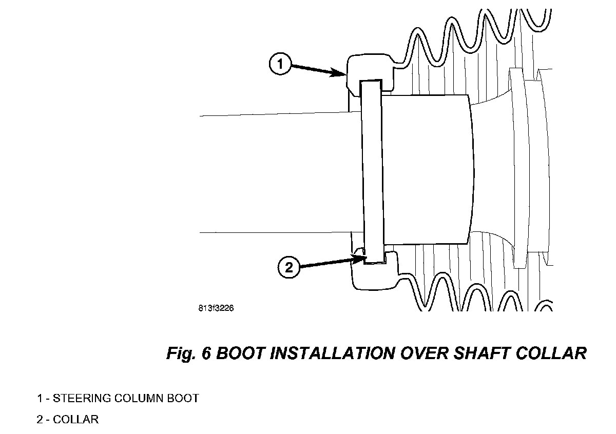 27. Check and make sure plastic collar on column shaft is engaged in groove within boot, (Fig. 6).