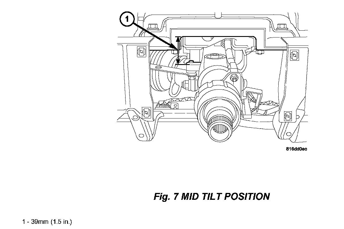 42. Use the power tilt/telescope switch to position the steering column in mid-tilt position prior to attaching the revised steering column brace, p/n 04595994AA, (Fig. 7).