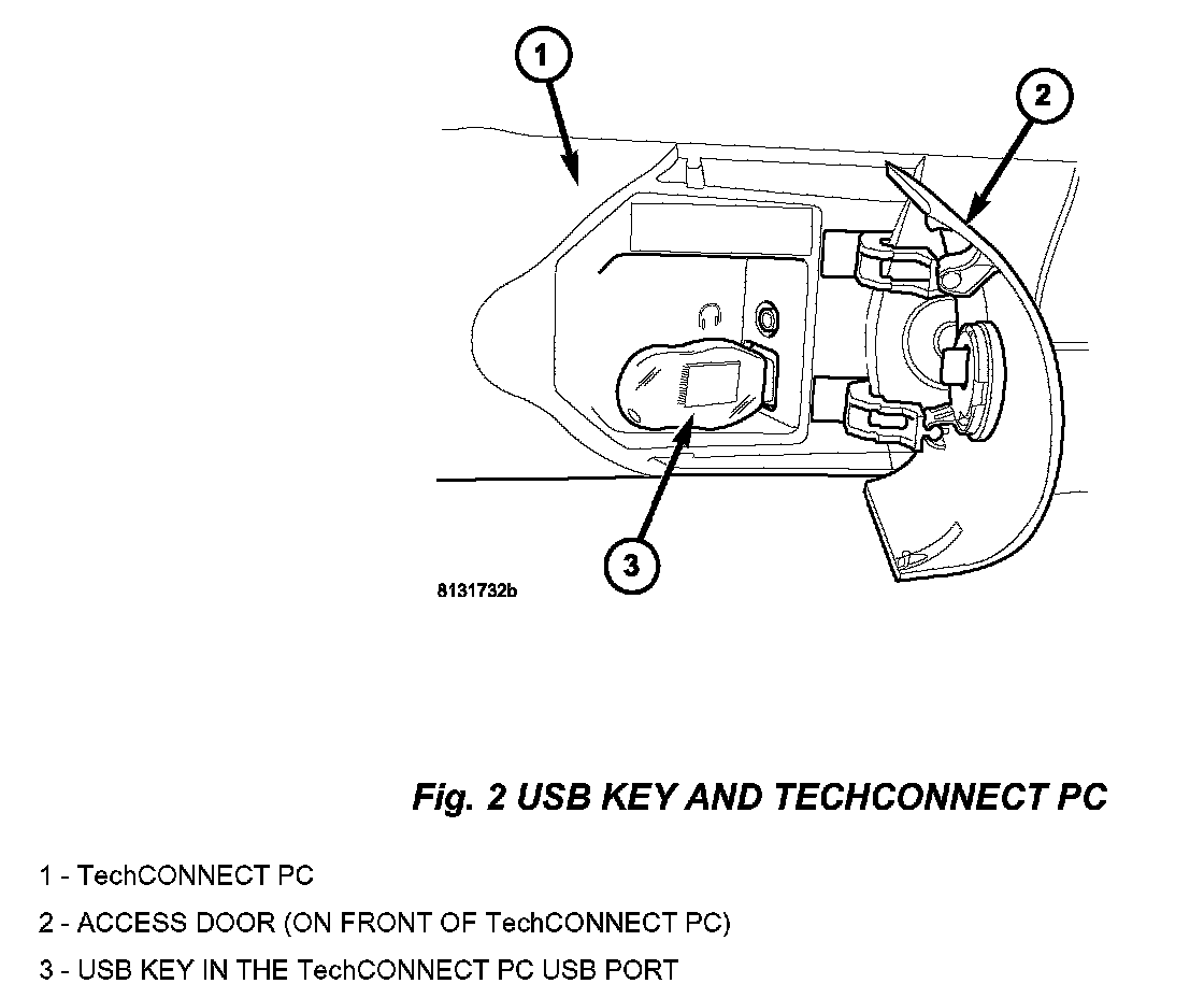 2. Insert the USB Key, into the USB port on the TechCONNECT or equivalent PC (Fig. 2).